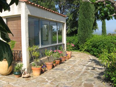 Loin des séjours standardisés dans un village de vacances ou dans l'environnement bruyant et surpeuplé d'un camping; venez vous ressourcer au coeur d'une nature authentique et preservée sur un petit vignoble provençal tout en coteaux cultivé biologiquement, et profitez de l'un de nos 2 appartements au calme avec vue panoramique sur la mer Méditerranée et les îles d'Hyères, du fort de Brégançon jusquà l'île de Porquerolles.