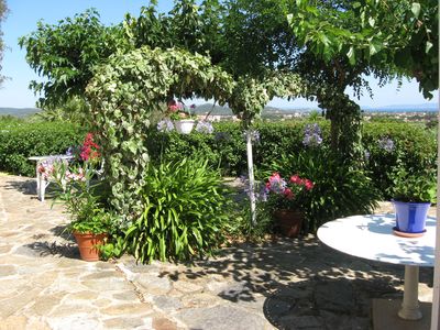 C'est le point de départ idéal pour une multitude de balades inédites et variées. Pour plus de renseignements, consultez la rubrique Balades. La propriété qui se trouve à environ 3 km du village est disposée en coteaux, ce qui lui permet de bénéficier d'une vue magnifique sur la mer du fort de Brégançon jusquà l'île de Porquerolles, mais aussi sur les collines des Maures.